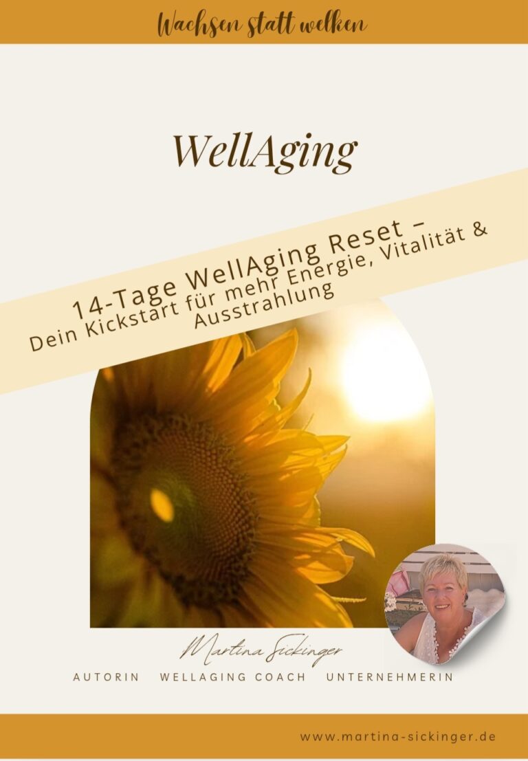 WellAging ist ein positiver Weg, um gesund und vital älter zu werden – ohne Druck und ohne Anti-Aging-Kampf. Wenn du direkt starten möchtest: Lade dir kostenlos meinen 14-Tage WellAging Reset herunter und beginne Schritt für Schritt mit kleinen, wirksamen Veränderungen.